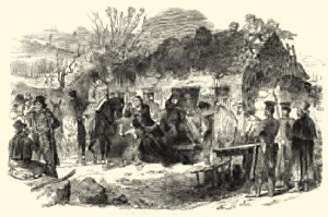 The Great Hunger in Ireland led to the greatest loss of life in western Europe in the 100 years between the Napoleonic Wars and World War I. Whole families and villages fell to starvation and accompanying diseases. Cholera, deadly fevers, dysentery, scurvy and typhus swept the population. People died in such great numbers that it was impossible to record all the deaths or to make enough coffins for burials. “Trap coffins,” which were made with a trap door in the bottom, were used for the trip to the cemetery. Once there, the coffin was placed over the grave and the trap door opened to drop the body into it, leaving the coffin ready for the next victim. Read more…